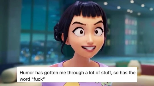 transcription: humor has gotten me through a lot of stuff, so has the word “fuck”