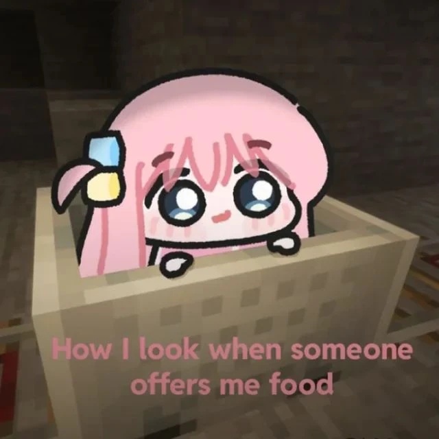 transcription: how i look when somebody offers me food OwO